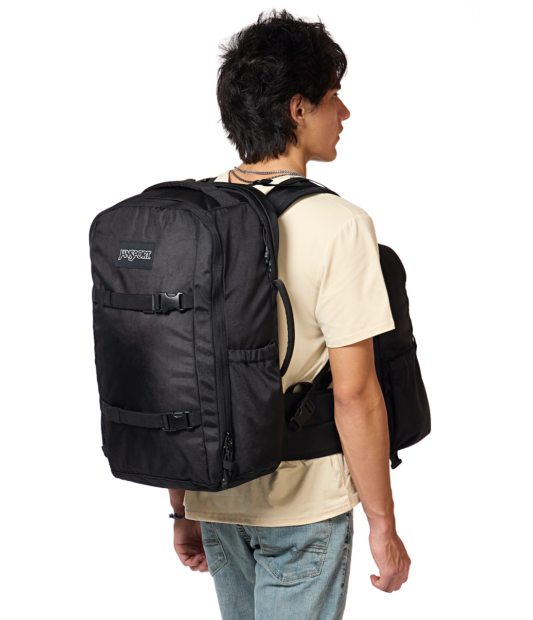 espacio y grandes ventajas para viajar, como hebillas de sujeción y el