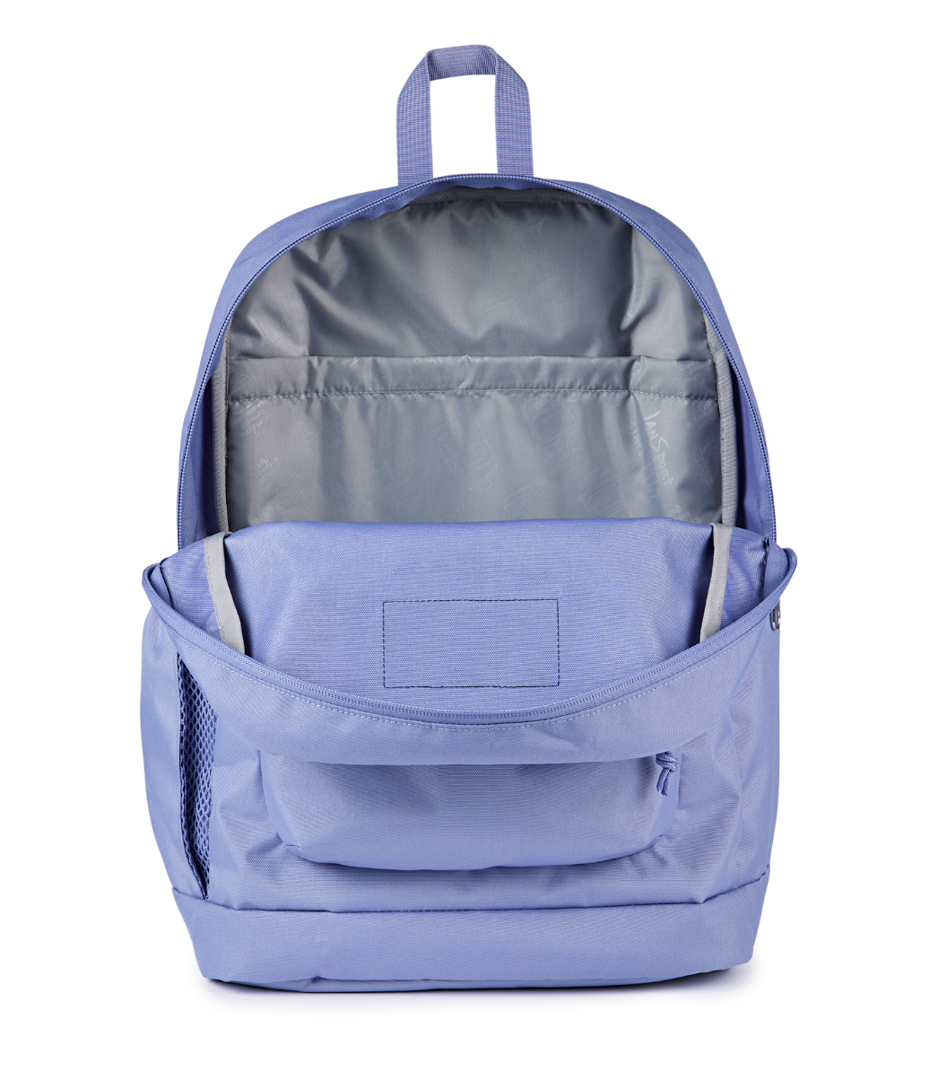 Mochila de un compartimento con bolsillo frontal con cierre, bolsillo lateral para botella de agua y sobre interno acolchado para laptop 15 pulgadas.