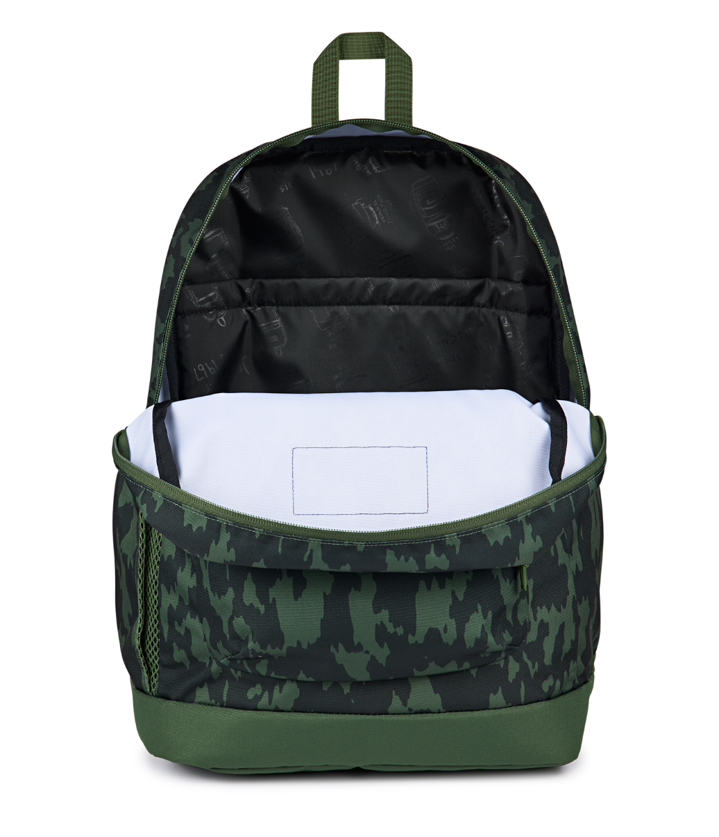 Mochila de un compartimento con bolsillo frontal con cierre, bolsillo lateral para botella de agua y sobre interno acolchado para laptop 15 pulgadas.